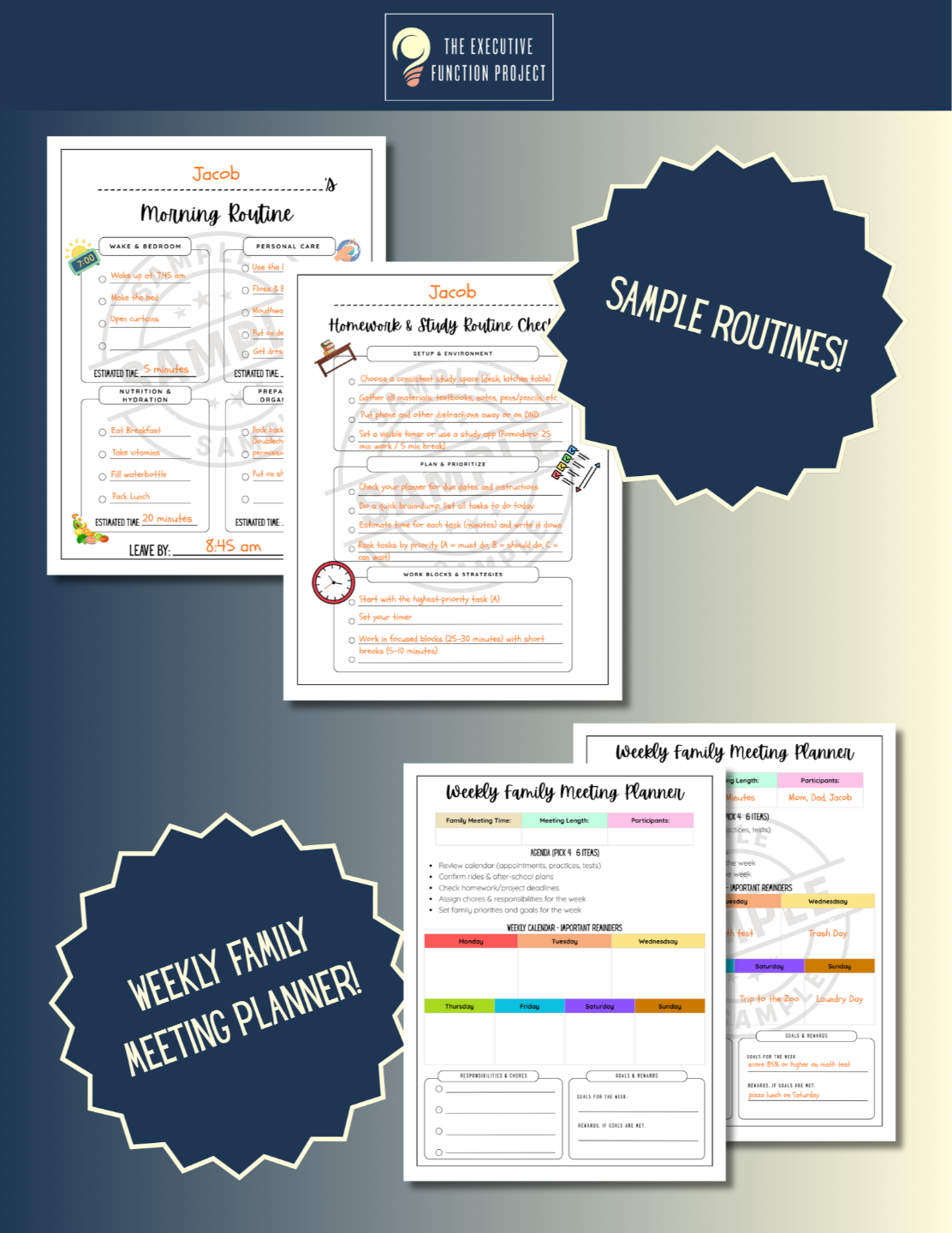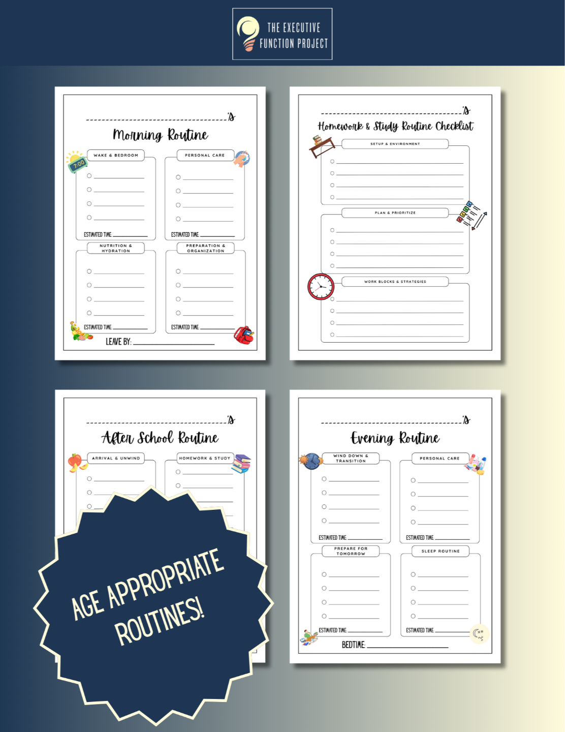 Help tweens build independence with simple, teachable routines. The Middle School Routine Kit (The Executive Function Project) provides ready‑to‑use checklists and family planning tools designed to strengthen planning, time management, and organization for students in grades 5–8.
