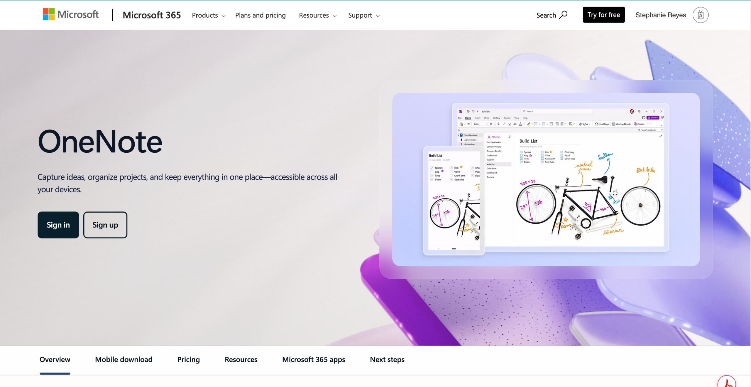 A digital notebook that allows you to capture and organize notes, ideas, and information across different devices, with features like handwriting recognition and audio recording.