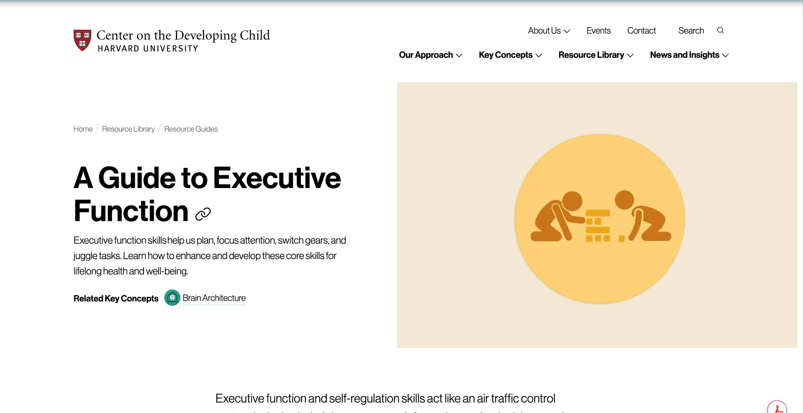 The Center on the Developing Child at Harvard University offers research-based insights into executive function and self-regulation, including interactive resources and videos explaining the science behind executive function.