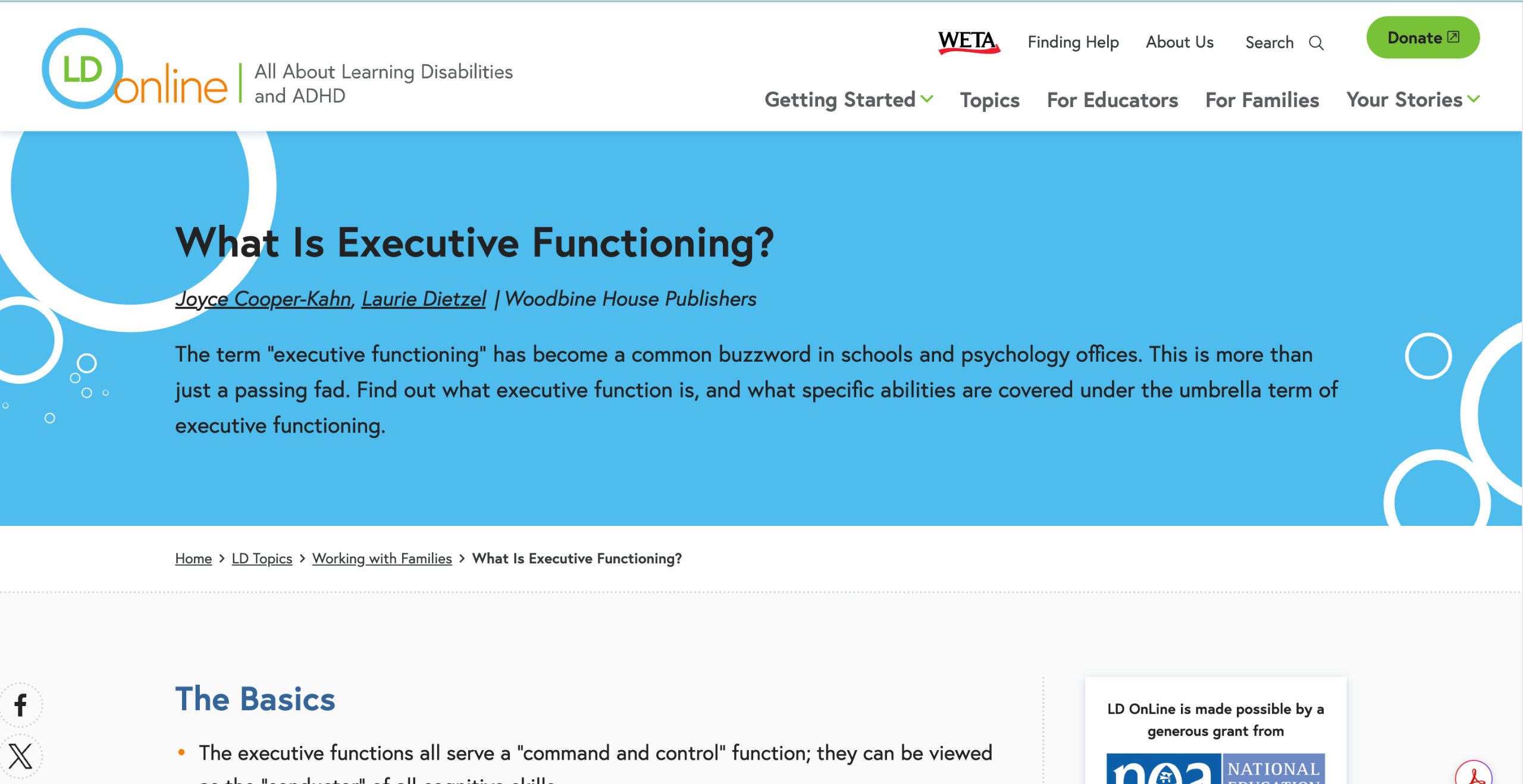 NCLD provides valuable resources and articles on understanding executive function, including its role in learning and strategies for improving executive function skills.