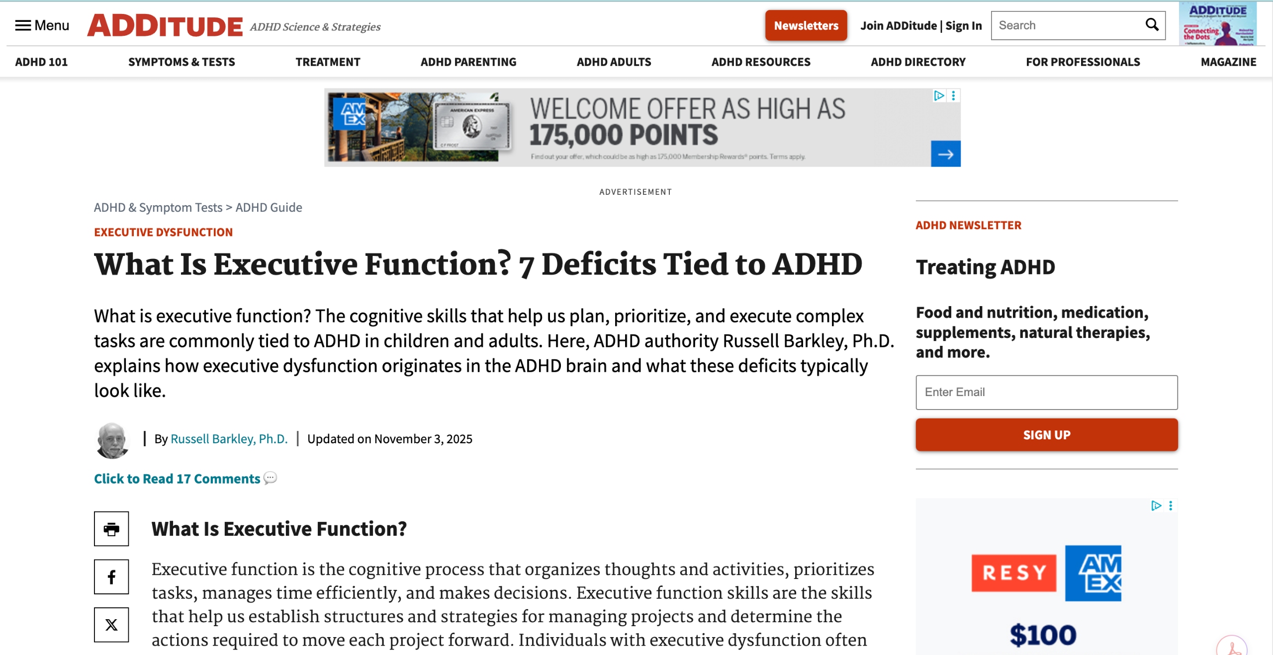 ADDitude magazine provides in-depth articles and resources on understanding and managing executive function deficits in children, adolescents, and adults with ADHD and related conditions.