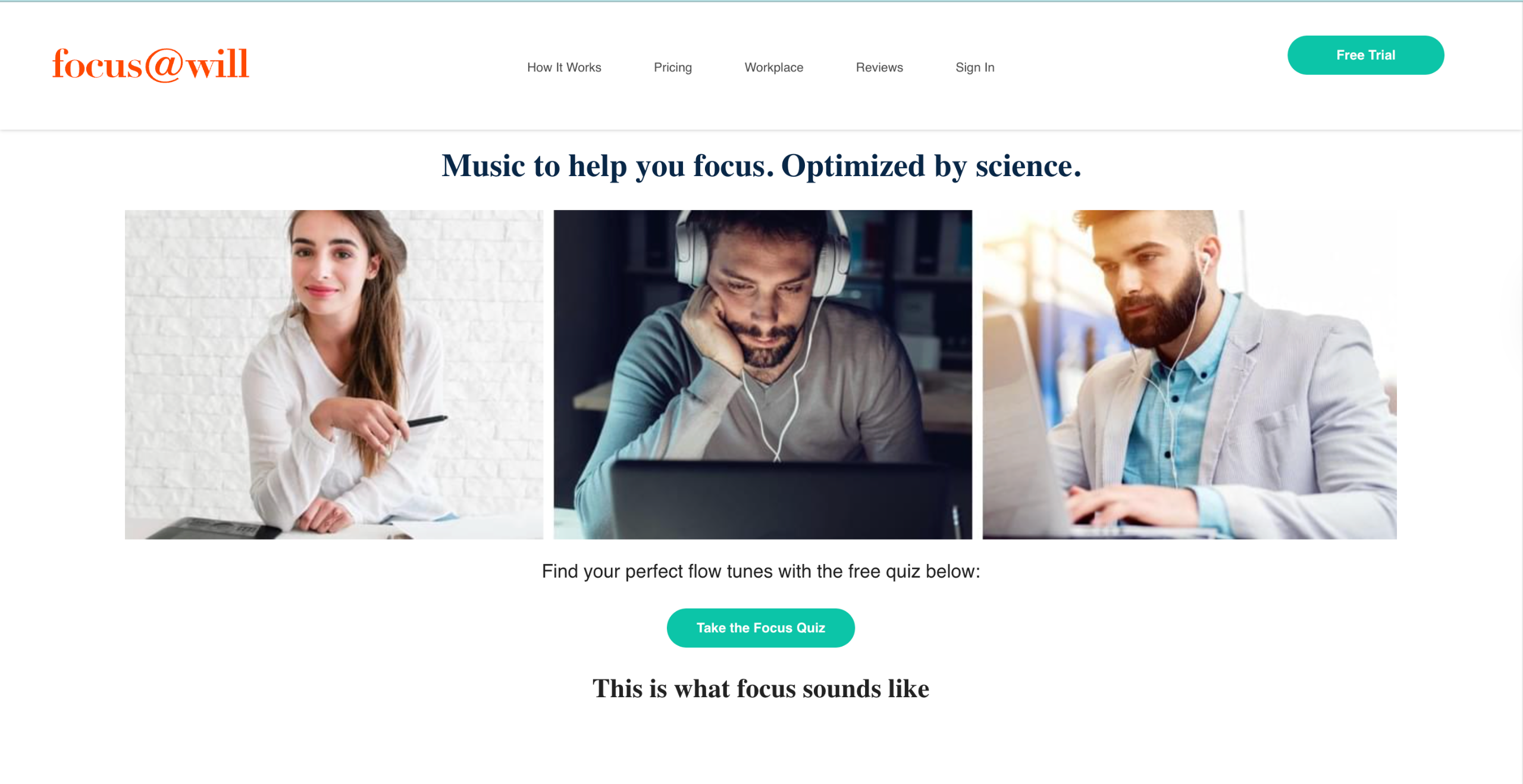 A music streaming service that provides personalized playlists scientifically designed to enhance focus, productivity, and concentration based on your preferences and work style.